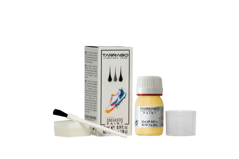 HIGH COVERAGE POWER AND CONSISTENCY: Tarrago Sneakers Paint is an acrylic paint, with a water-based formula specially formulated to change the color, customize or restore your smooth leather, synthetic leather or canvas sneakers. Thanks to its high concentration of high-quality pigments, it has the best coverage power, less layers to achieve a better coverage. High viscosity, less time to prepare paint and mixtures. 0.8 fl oz or 4.4 fl oz bottle presentation.
